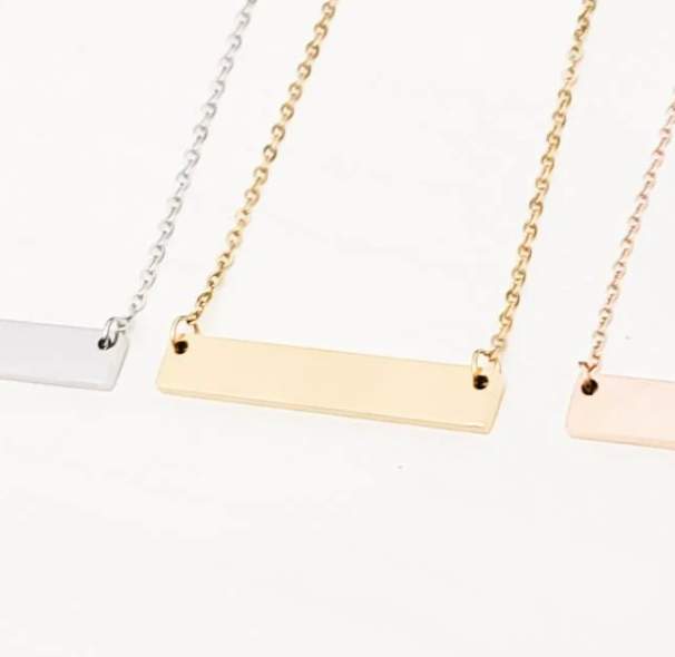 Size: Chain is approximately 18 inches long and bar is roughly 6x35mm with lobster clasp closure. Tarnish-resistant, nonfading, and sensitive skin friendly (hypoallergenic for most people)