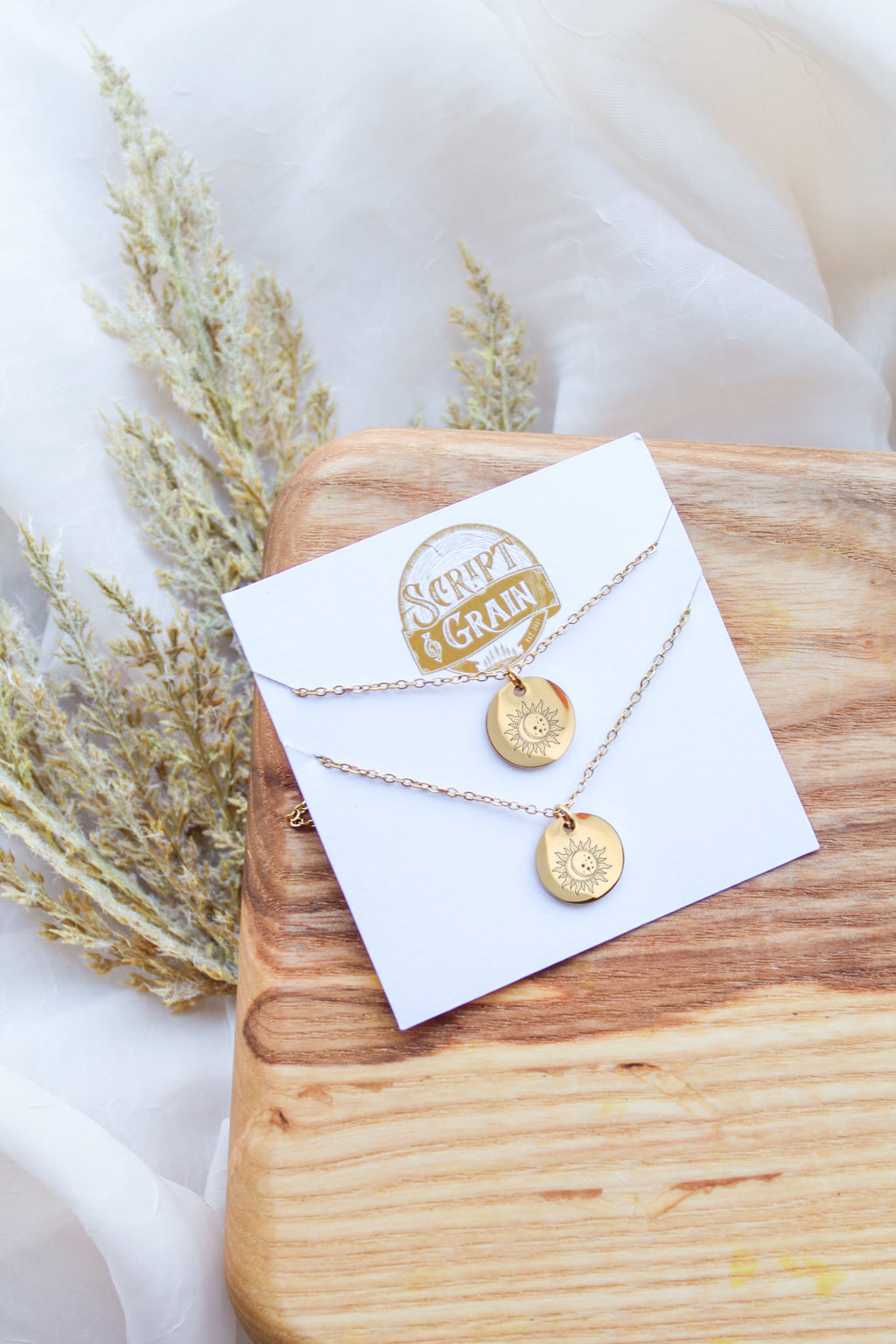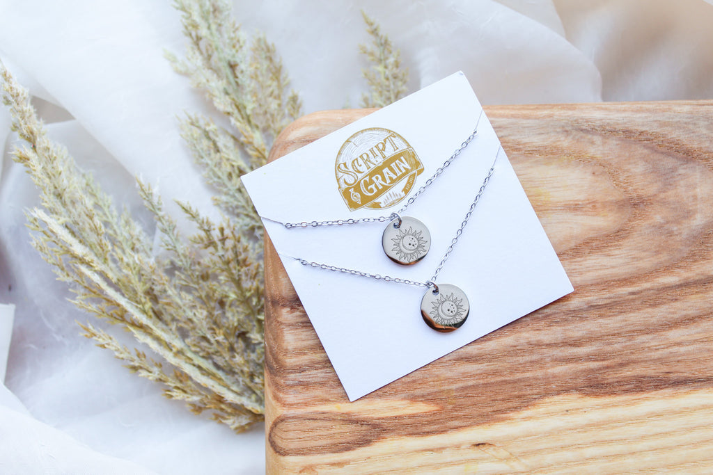 Size: Chain is approximately 45cm long (plus a roughly 2 inch long extender) and attached disc is roughly 15mm in diameter. Lobster clasp closure.
