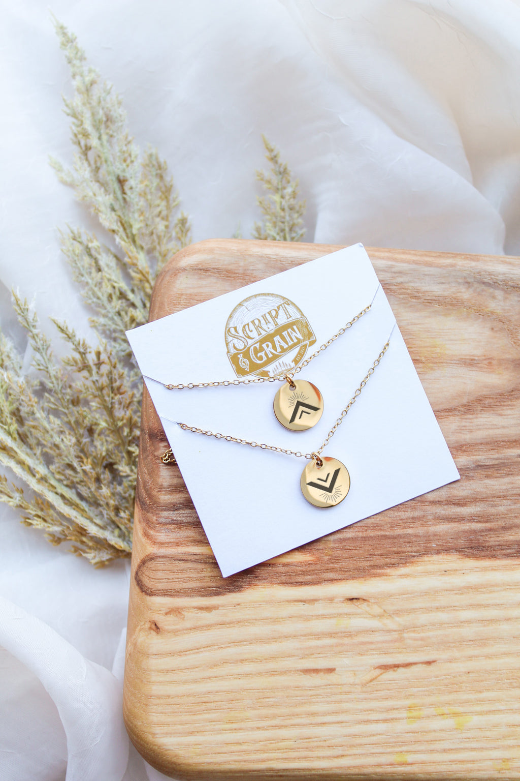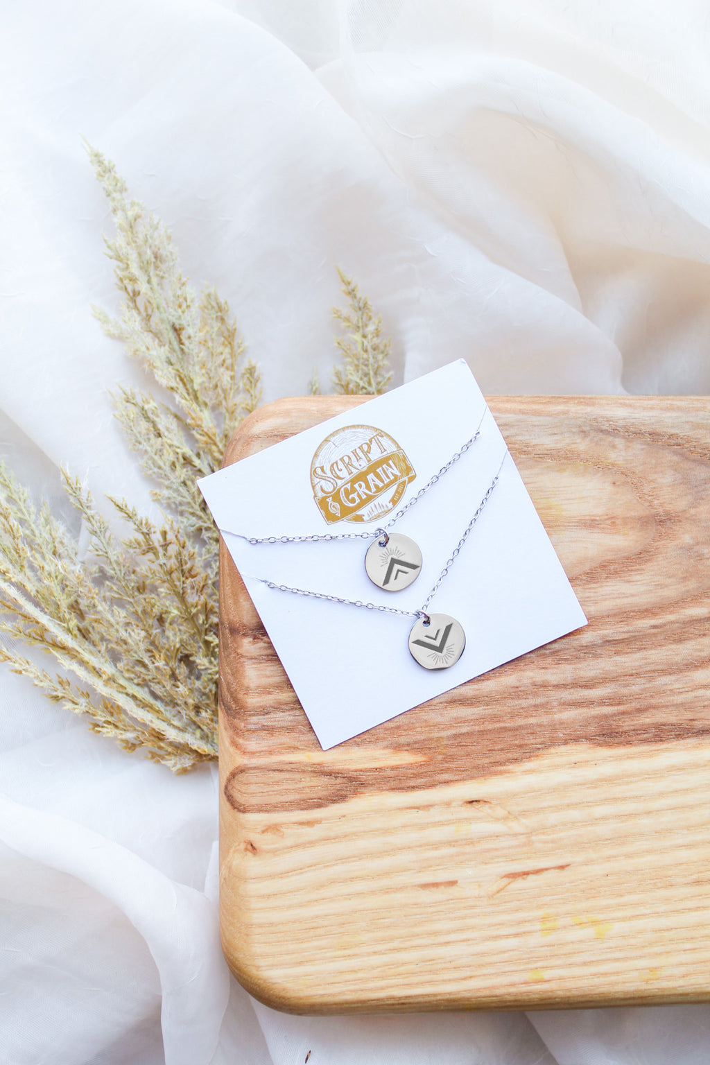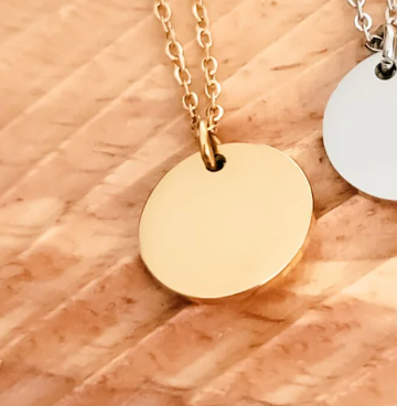 Size: Chain is approximately 45cm long (plus a roughly 2 inch long extender) and attached disc is roughly 15mm in diameter. Lobster clasp closure.