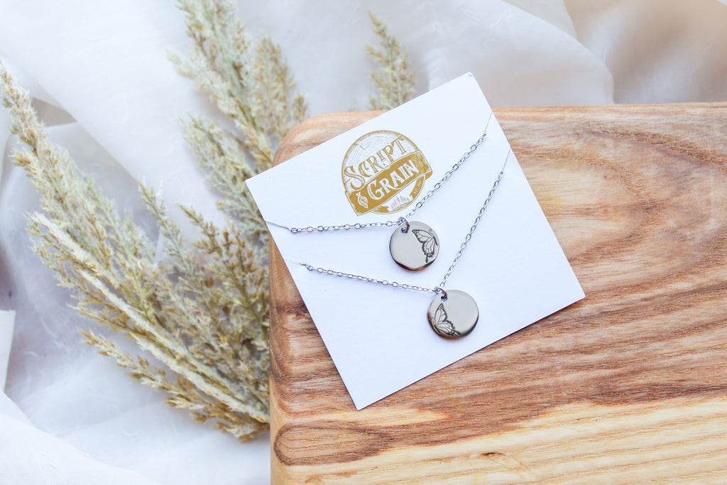Size: Chain is approximately 45cm long (plus a roughly 2 inch long extender) and attached disc is roughly 15mm in diameter. Lobster clasp closure.