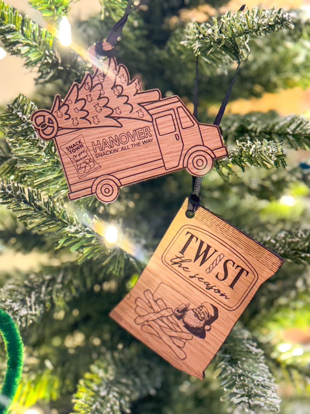 There's no place like... Snack Town for the holidays! With a nod to everything sweet (and salty) that Hanover is known for, these ornaments represent the place we love most; the snack cabinet. (OK, HOME too!)